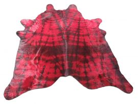 Tapis peau de vache teint rouge à effet tie-dye - Taille: 7 1/2' x 7' C-1698Prix spécial 339,15 $ Prix normal 399,00 $ -